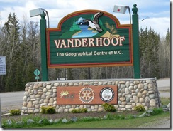 Especially interesting was a collection of photos of Native, Chinese and Caucasian people from Northern BC. taken during the early 1900’s. These are ordinary people doing everyday things. The collection was created by a Chinese photographer C.D. Hoy. His daughter, Lily Hoy Price, has just published a book called “I Am Full Moon” about her father’s work. Apparently her Chinese name means "Full Moon”. We had our lunch in the parking lot and then continued or journey north towards Prince George. Here we got onto the Yellowhead Highway, Hwy 16 west towards Prince Rupert, BC. We decided to stop at a small, timber town called Vanderhoof, which apparently is the geographical centre of British Columbia. We camped at Dave’s RV Park just east of town and approx. 1/2 Km. north of Hwy 16. Very Nice park and Very quiet. Highly recommended.